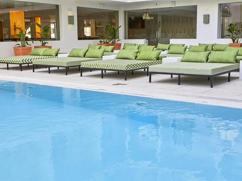 Dit charmante hotel aan het strand kijkt uit over het ongerepte witte zand en het turquoise water van Playa de Palma. Het hotel ligt op slechts 6 km van de dichtstbijzijnde golfclub en biedt gemakkelijke toegang tot een verscheidenheid aan restaurants, winkels, nachtclubs en bars, met openbaar vervoer op slechts 600 meter afstand. De felgekleurde gevel verwelkomt gasten in een rustige sfeer. Elke lichte kamer heeft een balkon, gratis Wi-Fi, een flatscreen-tv en een kluis, allemaal badend in natuurlijk licht, waardoor een rustige oase van rust ontstaat. Gasten kunnen genieten van een breed scala aan vrijetijds- en dineropties voor alle smaken. Dit rookvrije hotel beschikt over twee buitenzwembaden, een restaurant, een bar/lounge, een poolbar en een koffieshop/café. Er wordt een gratis ontbijtbuffet aangeboden, evenals gratis Wi-Fi in de openbare ruimtes. Conciërgediensten en fietsverhuur zijn ook beschikbaar.